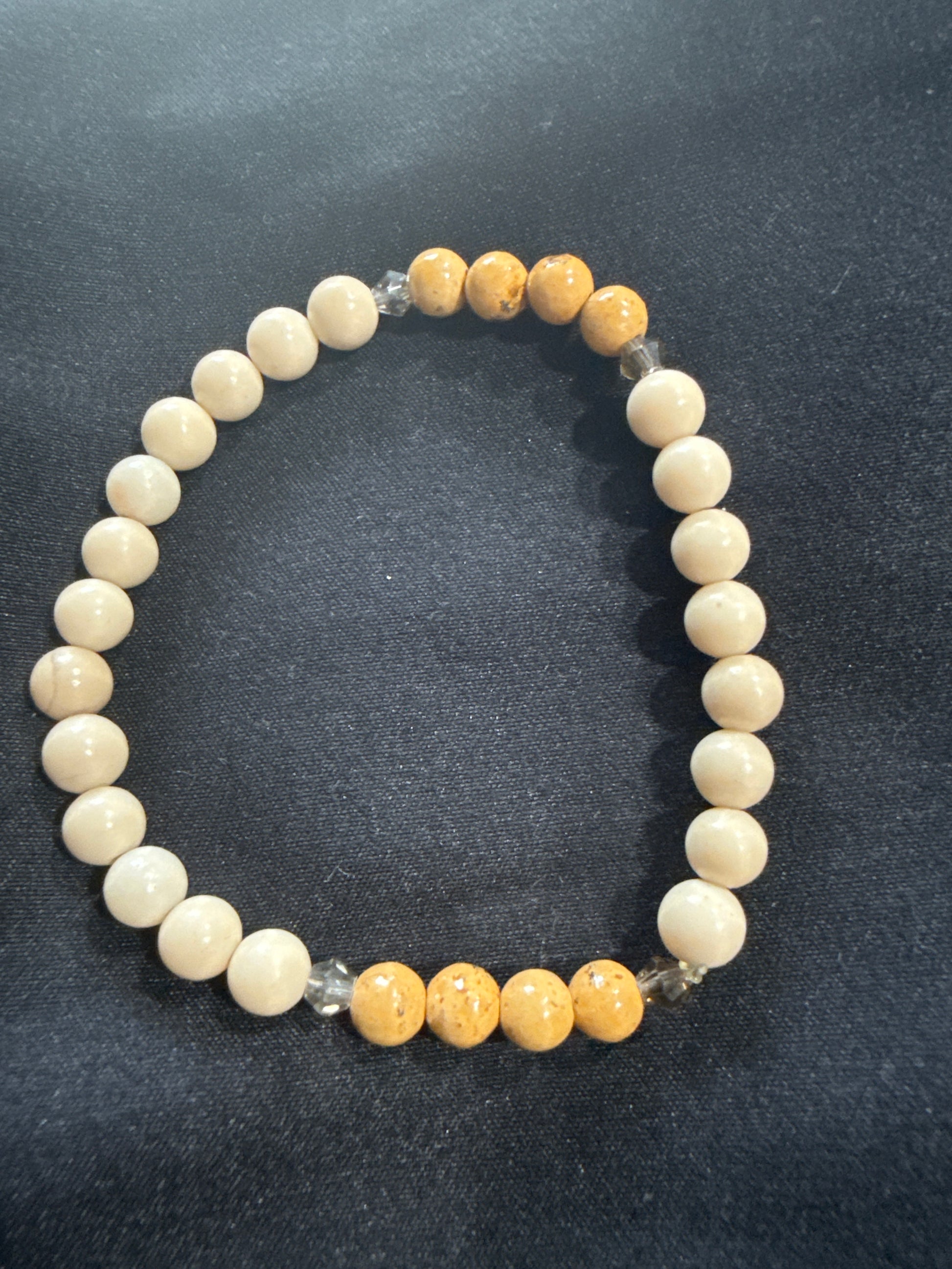 A meeting of stone and story, the Timber Bloom Bracelet weaves together the fossilized grace of Chrysanthemum Stone with the earthy, wood-like lines of Woodgrain Jasper. This bracelet evokes ancient forests and weathered stone — symbols of quiet endurance and the slow unfolding of wisdom.