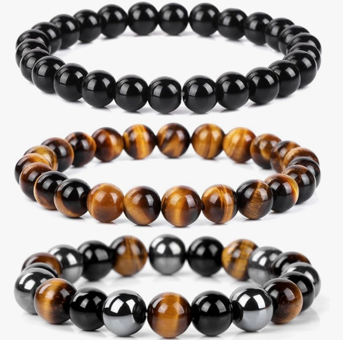Step into your power with the Triple Protection Bracelet, a bold fusion of three of the most protective and grounding stones in crystal healing. Combining the strength of Tiger Eye, the shielding energy of Obsidian, and the grounding force of Hematite, this bracelet is designed to guard your energy, boost confidence, and keep you centered throughout the day.
